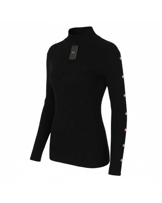 Women's Black Modo Jumper 1 S Wool Blend Close-Fitting Openwork Sleeve RRP215