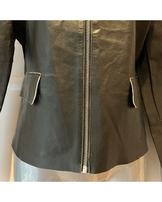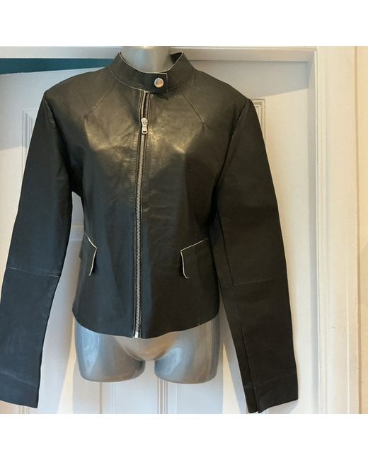 Genuine Max Mara Weekend ladies leather jacket. Black, but the inside is cream/white. Beautifully soft. Long sleeves, with a raw edge so you can cut this to your arm length. Full front zip. Collar. 2 front pockets. SZ 18UK pit2pit 21 inches, length 20 inches. Genuinely new, unworn, cost £590