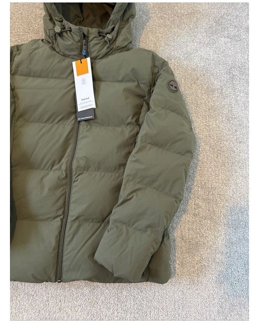 Timberland puffer jacket insulated coat in khaki Green size medium (UK). Condition is new with tags The coat features reboot technology which is 40% recycle plastic well insulated warm padded and insulated with two large zip pockets to each side water repellent finish hooded.
