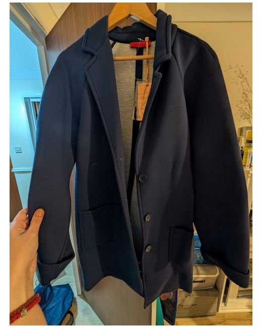 The Max&Co. Navy Cedrata Button Coat is a stylish and versatile outerwear option for women. Made from viscose material, this autumn coat in a classic blue colour features a regular fit and a button-up design. Size L, new with tags
