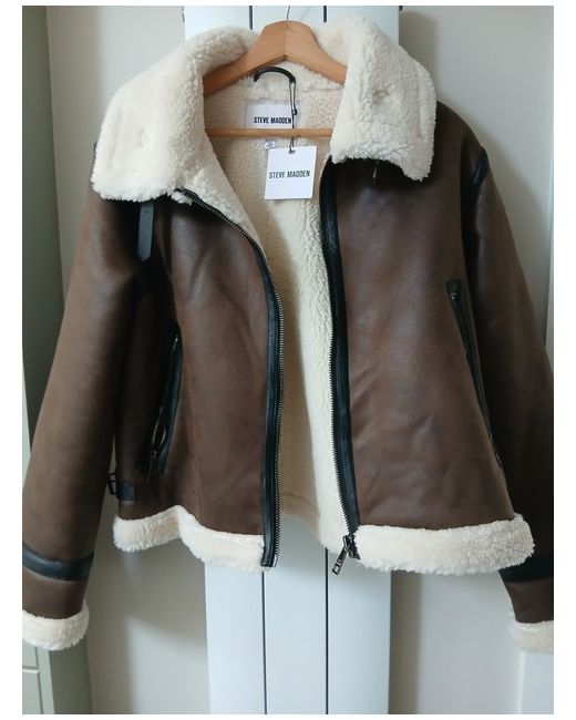 The Steve Madden Aviator jacket is a stylish and versatile mid-length jacket perfect for casual occasions in the winter season. Made from polyester with a polyester lining, this brown jacket features a biker style design with a regular fit for a comfortable and fashionable look.In a size XL for an oversized look, this jacket from a reputable brand like Steve Madden is a must-have for any woman looking to stay warm and on-trend in the colder months.