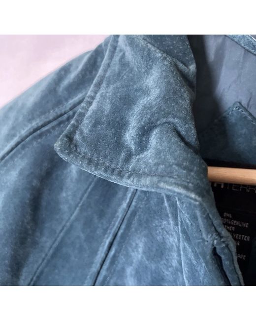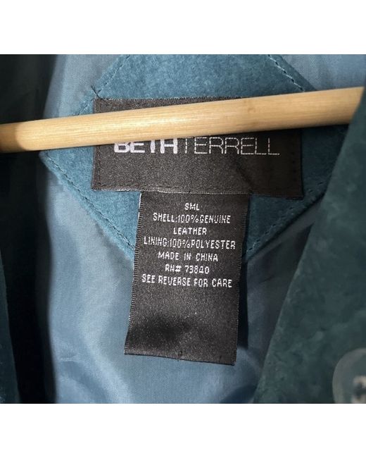 New no tags. Not worn just tried on. Turquoise suede leather jacket/shirt style . With pockets . Lovely tailored style shoulder area . Size SML Beth Terrell Small to medium fit .