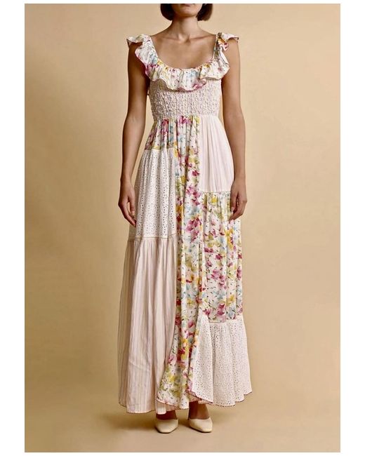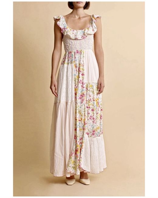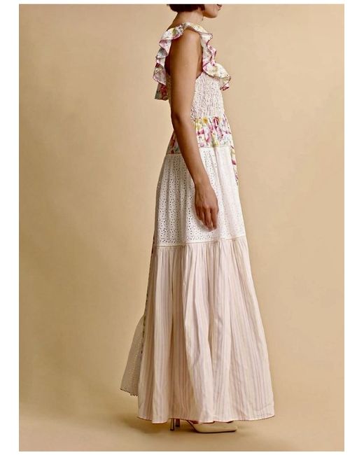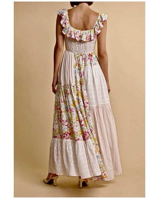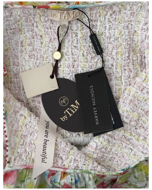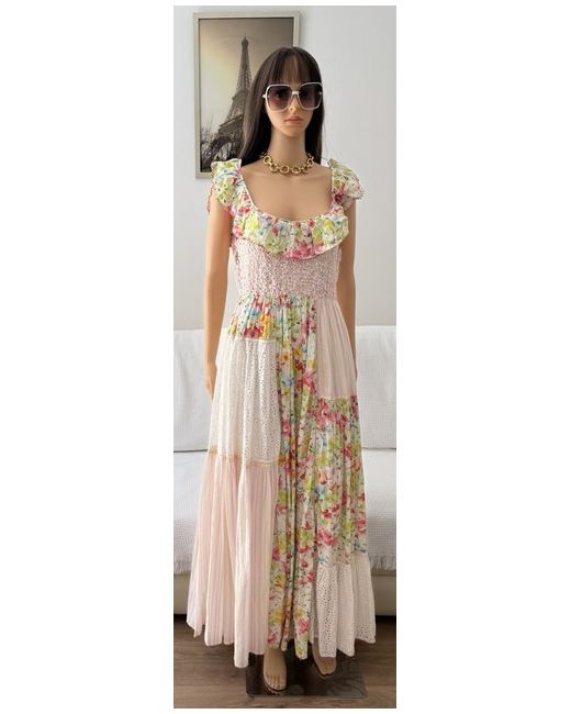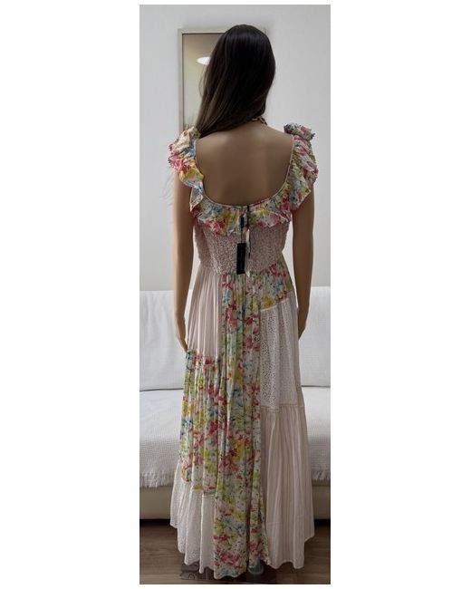 byTiMo Beautiful Floral-Print Patchwork Maxi Dress/Size Medium UK Size 12.” Brand New Dress With A Tag On It.” DETAILS-Highlights white/multicolour floral print patchwork design smocked panel ruffled detailing scoop neck Sleeveless scoop back fitted waistline full skirt straight hem SIZE & FIT Size Medium- fits UK Size 12.” COMPOSITION & CARE Composition Viscose, Cotton Washing instructions Read Manufacturer