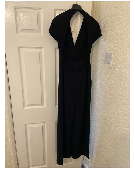 Composition: 100% Polyester. Crepe fabric jumpsuit. V-neck. Short sleeve. Wide legs. Cut-out design at the back. Hook and eye fastening at the nape. Concealed zip fastening at the waist. Lining: 100% Polyester. 8 US size. ( 12 UK size 44 IT size). Measurements: Shoulder to shoulder : 14.75”( 37.5 cm). Waistline taken at the seam line is 13.3”( 33.8 cm). Leg opening is 12”( 30.4 cm). Full length: 60”( 152.4 cm). Country of manufacture: China.