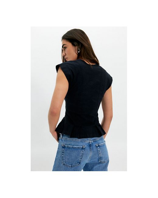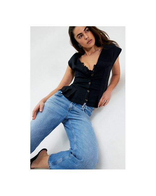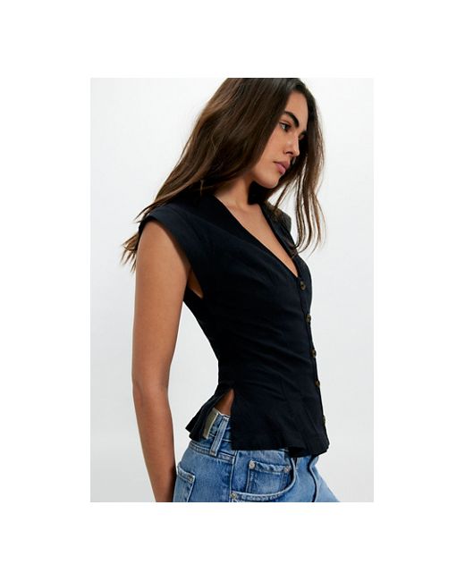 Taking a timeless style to the next level, this stunning vest is featured in a staple, button-front silhouette with V-neckline, defined darting at bottom, and capped sleeves for a classic finishing touch. **Fit:** Fitted style **Features:** V-neckline, button-front closure, capped sleeves, darting at bottom, side slits at bottom **Why We ❤ It:** The perfect piece to take you from the workday to the weekend, this totally timeless vest is just as versatile as it is vintage-inspired. Dylan Vest Jacket at Free People in Black, Size: XL
