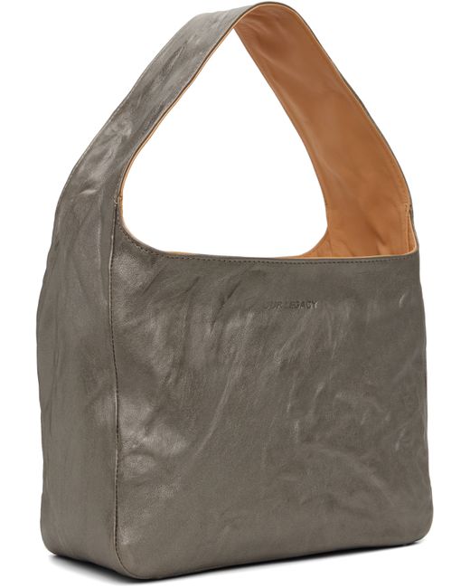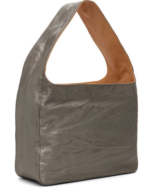 Vegetable-tanned grained sheepskin shoulder bag. · Fixed shoulder strap · Logo embossed at face · Zip closure · Patch pocket at interior · Twill lining · H7.5 x W13 x D4.5 Supplier color: Metallic oyster sheepskin
