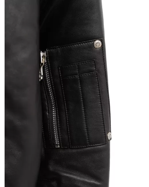 black leather zip fastening long sleeves ribbed hem