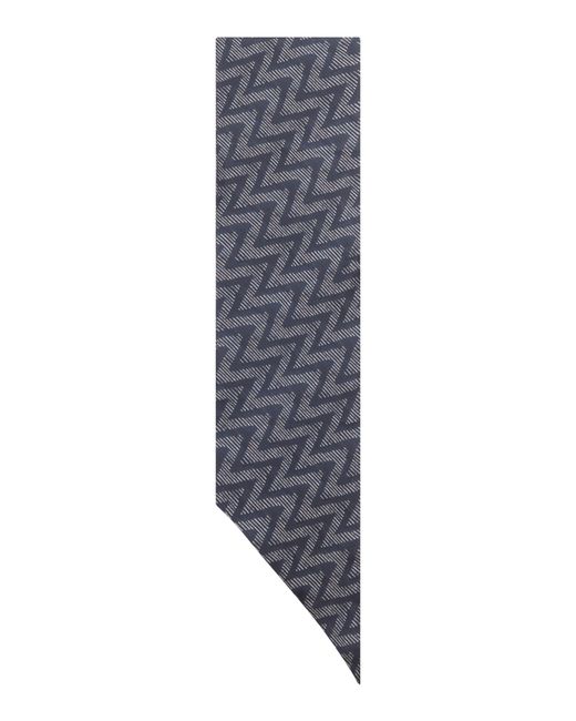- Long, tapered scarf- All-over geometric zigzag pattern- Finished edges- 100% silk- Color: Midnight Blue