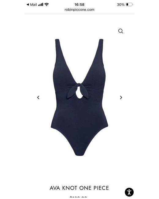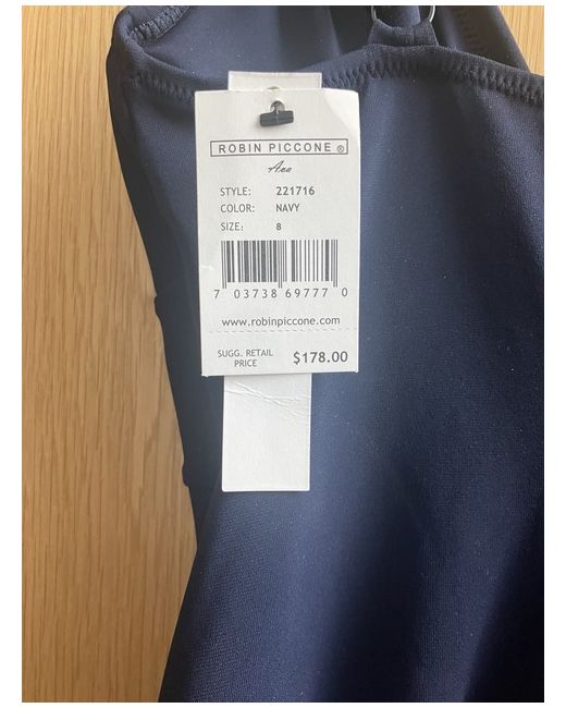 Beautiful underwired one piece swimsuit by Robin Piccone dark navy blue Model is wearing the true colour Flattering fit key hole front detail This is an American size 8 British 12 It’s brand new never worn tags on Price was $178 will sell for £50 This is a rare find for a designer swimwear