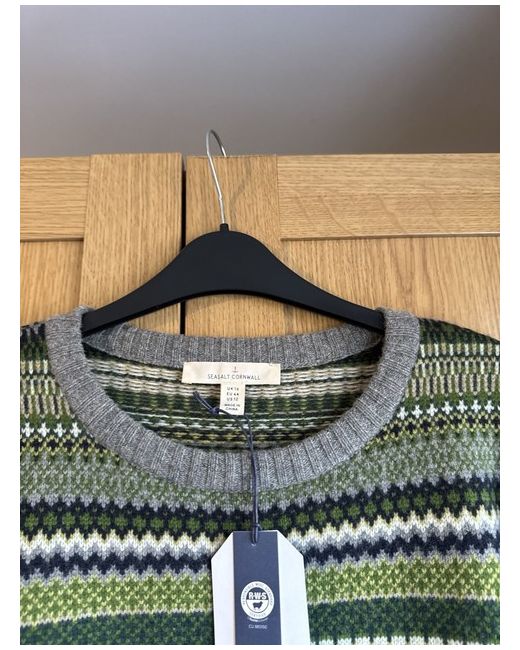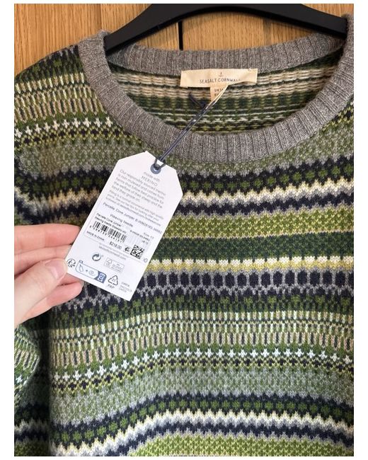 Seasalt percella cove jumper new with tags green fair isle striped 80% wool Pit to pit lay flat measurement- 23” size 16