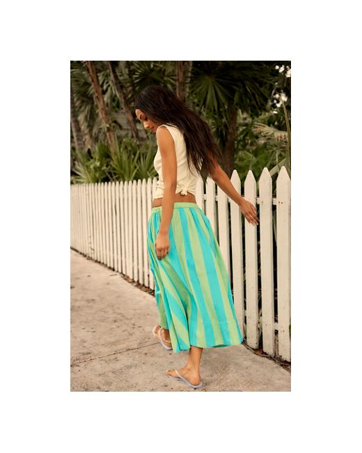 A top-rated favorite, now in stripe. Found: the perfect midi skirt from our free-est collection, featured in a classic A-line fit and effortless pull-on design. * Mid-rise * Elastic waistband * Pleating throughout * Side pockets * Soft poplin fabrication Lowen Striped Midi Skirt by free-est at Free People in Mint Combo, Size: XS