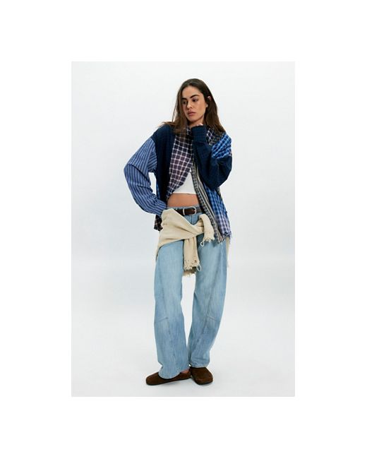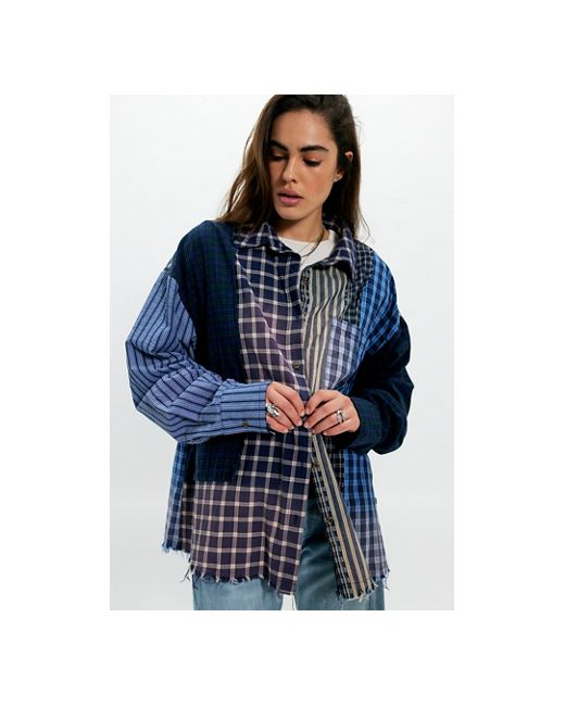 Combine comfort and style with this vintage-inspired button-down from The Tales, featuring an oversized, slouchy silhouette, a lightweight cotton fabrication, and contrasting checked panels for an inherently nostalgic finish. * Long sleeves * Collared neckline * Dropped shoulders * Frayed details The Tales Patchwork Check Stripe Button Down at Free People in Blues, Size: XS