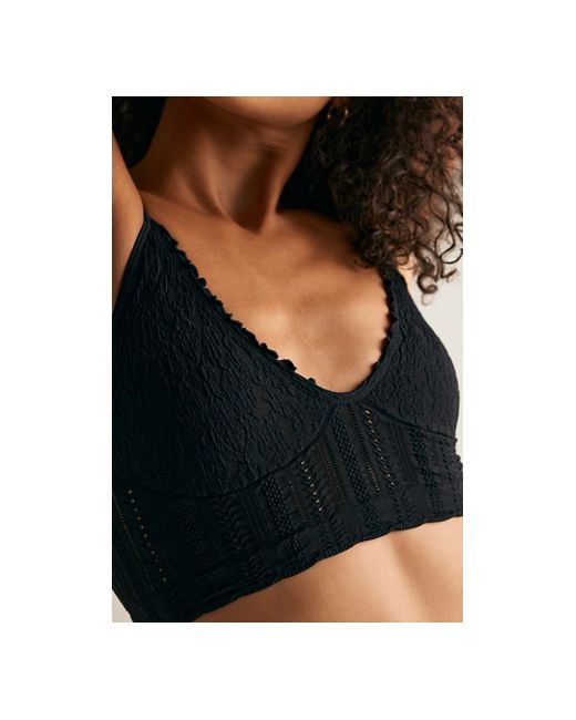 A favorite seamless fabrication gets a textured twist with this longline bralette from Intimately. **Fit:** Bralette style, pull-on design, longline **Features:** Soft, stretchy seamless fabrication, V-neckline, triangle cups, lettuce-edge trim, textured finish, skinny straps **Why We Heirloom Seamless Bralette by Intimately at Free People in Black, Size: XS/S