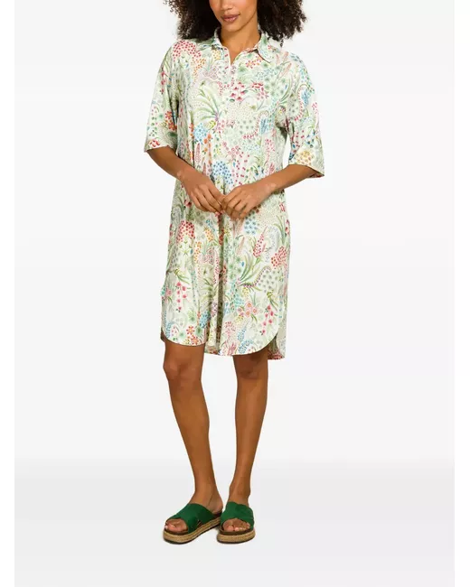 light yellow floral print turn-down collar short sleeves button fastening side slits