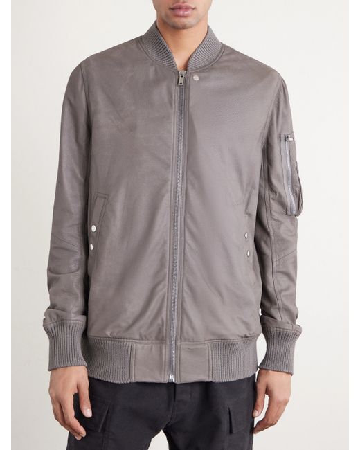 Gray Leather Bomber Jacket Men