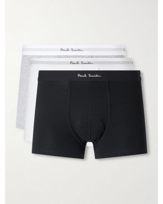 Stock up on Paul Smith's boxer briefs with this practical three-pack. Cut from stretch organic cotton-jersey, they're seamed for a close fit and constructed with an elasticated waistband patterned with the house moniker.