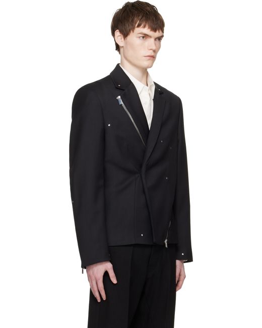 Stretch recycled wool twill jacket. · Rivets throughout · Notched lapel · Zip fastening at lapel · Button closure · Zip vent at front hem · Padded shoulders · Surgeon's cuffs · Welt pockets at interior · Full sateen lining · Logo-engraved silver-tone hardware Supplier color: Black