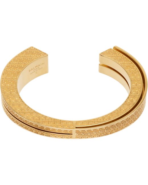 Open cuff bracelet in gold-tone brass. · Logo pattern engraved throughout · Logo at ends Supplier color: Gold