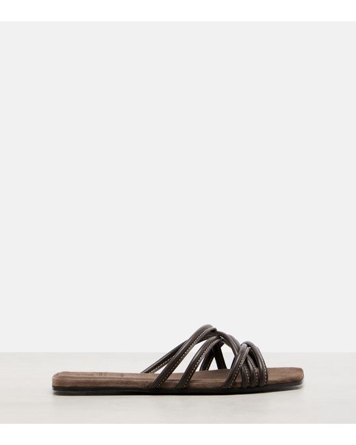 Upper: calf leather. Lining: leather. Sole: leather insole, rubber sole. Toe shape: square open toe. Made in Italy. Includes: dust bag, shoe box. Designer color name: Brown.