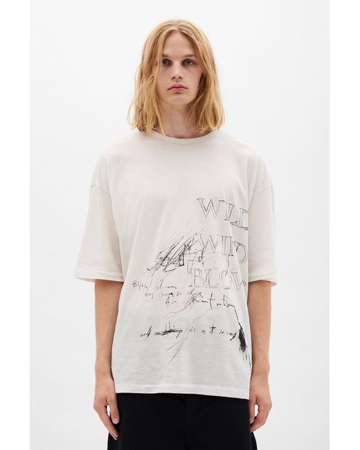 Dieter ''Wild Wind Blows'' High Comfort T-Shirt - Chalk - ''front wild wind blows'' graphic Print - Back Text Graphic Print - 100% Cotton - Made in Portugal Model wears italian size M