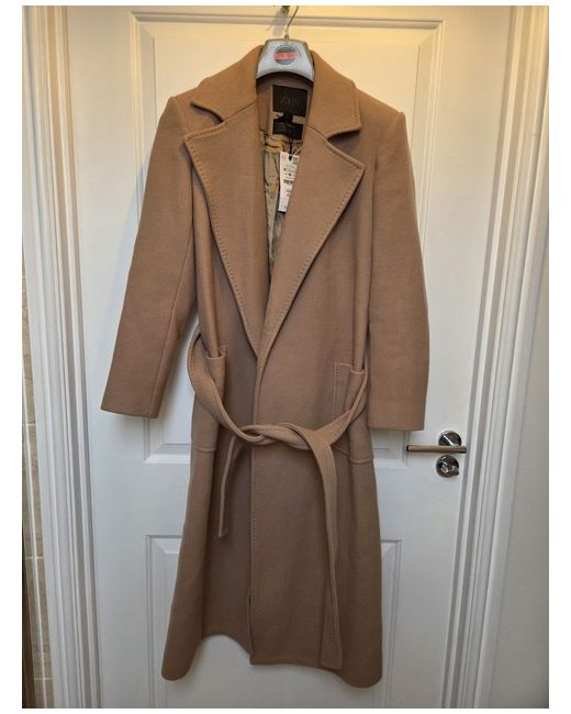 Zara camel colour wool blend belted long coat in size M. Brand new with tags, selling as it's too small for me.