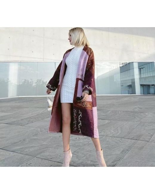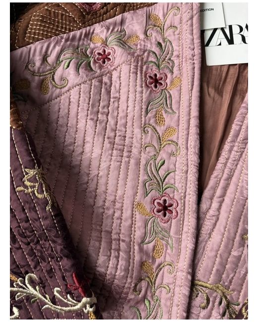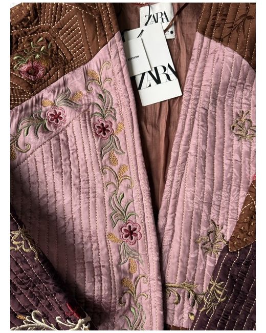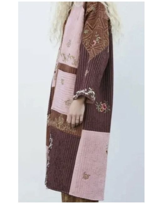 Zara Limited Edition embroidered patchwork kimono coat jacket in a burgundy/brown and pink colour scheme. Gorgeous! Blogger’s favourite 😻 From a smoke and pet free home 🏠
