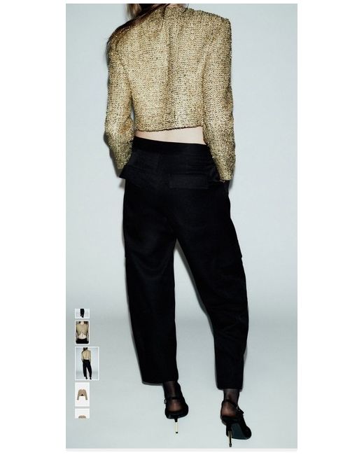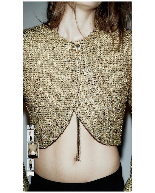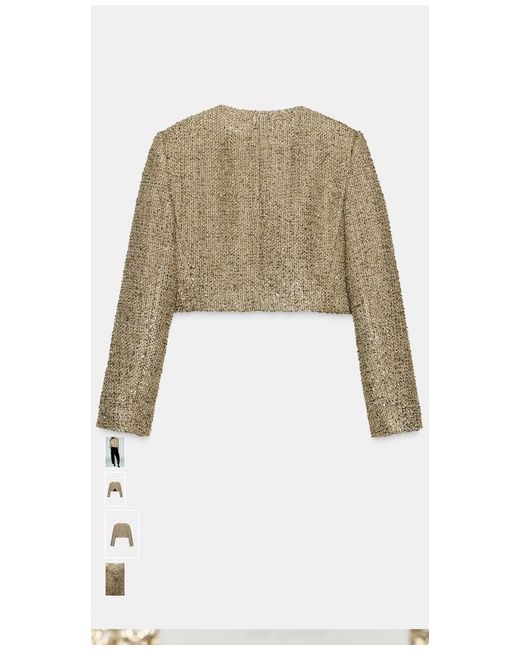 Zara Cropped Textured Jacket With Metallic Thread Golden Size M 9526/895