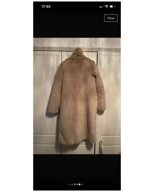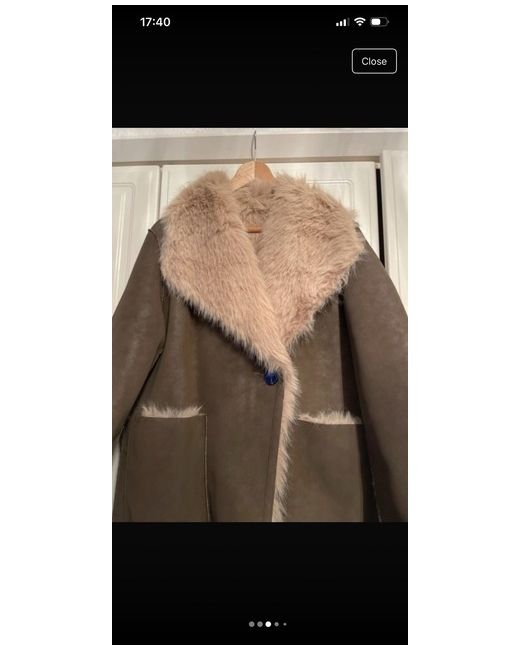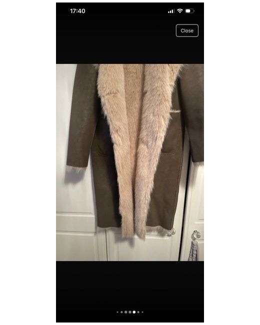 Faux fur reversible coat button fastening side pockets on first side, front pockets on material side Never worn
