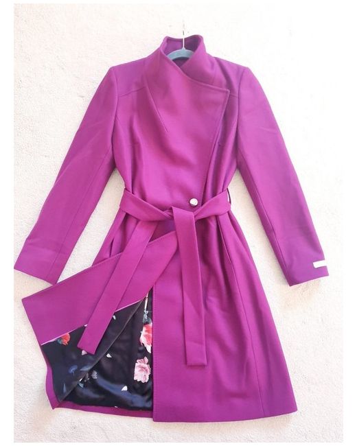 Ted Baker Purple Sandra Wool & Cashmere Blend Midi Wrap Coat Size UK 8 TB 1 Excellent condition for a used coat. just like new. Unworn. Beautiful shade of purple Sandra Size UK 8 TB 1