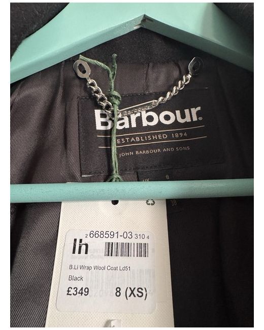 This new Barbour Black Wrap Wool Coat in size 4-6 is a stylish and practical choice for the winter season. Made from high-quality wool, this coat is perfect for casual occasions. With its classic black colour and timeless style, this coat from the renowned Barbour brand is sure to be a staple in any woman's wardrobe. Perfect for keeping warm and fashionable during the colder months, this coat is a must-have for any fashion-conscious individual.