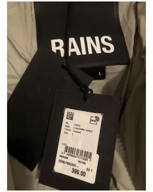 RAINS QUILTED LONGLINE SHELL PUFFER JACKET size L CEMENT COLOUR