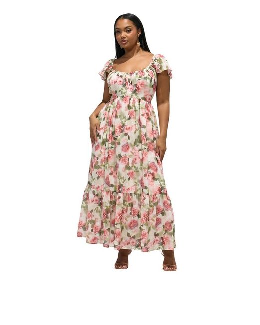 Product Description: This Yours London Curve White Floral Tiered Smock Dress is designed for women and curves, offering a flattering fit for every body. This features a floral print, tiered smock style, short sleeves, v-neckline, and flowing maxi length. Wear it as a wedding guest dress, for bridesmaids, or for other special occasions. Made from a comfortable woven fabric, pair with heels and a clutch for a polished and feminine finish.