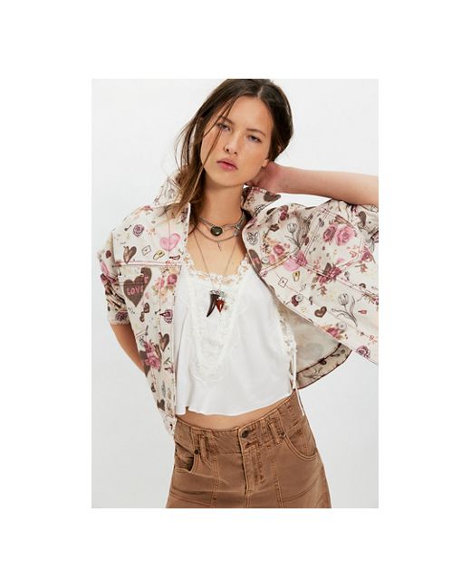 Take your denim jacket game to the next level with this so cool version from We The Free, featuring a printed design with dropped shoulders for shape and defined pleating at the back for an added special, swingy touch. * Button-front closure * Double bust patch pockets * Lower back hemline We The Free Opal Swing Printed Denim Jacket at Free People in Airbrushed Love, Size: XS