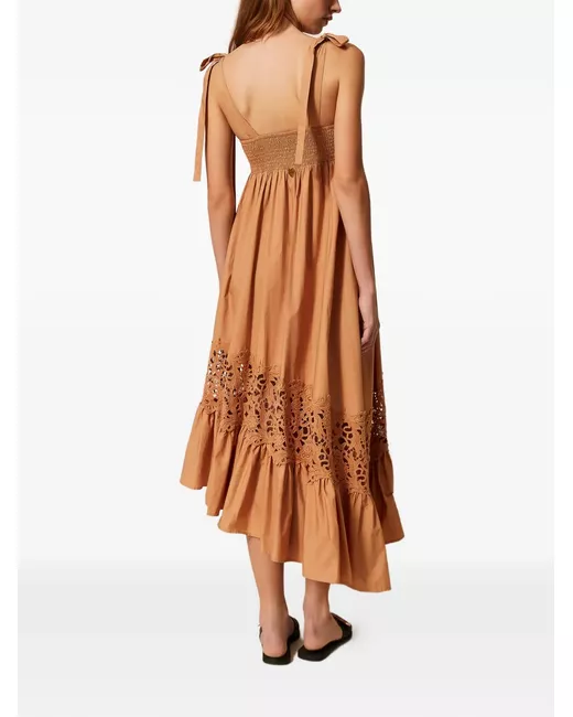 Beachwear Poplin midi dress with macramé Hazelnut Lace