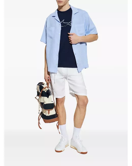 white drawstring button fastening shark charm rear pockets linen