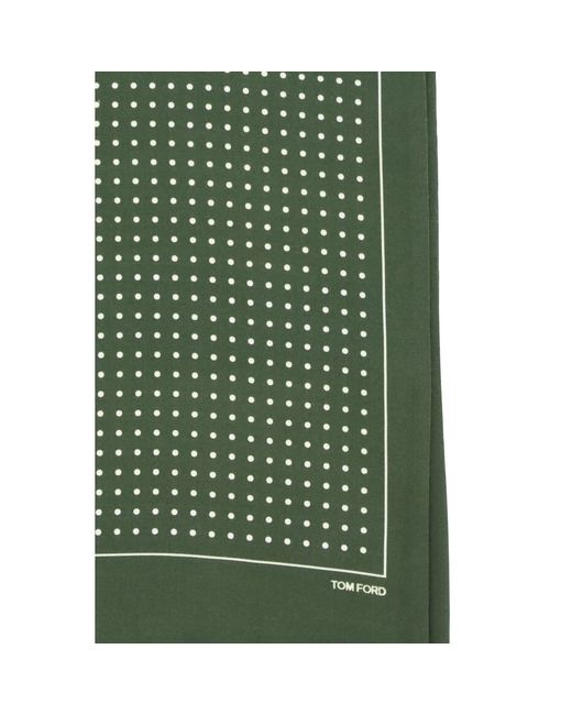 The polka dot Scarf by Tom Ford is made of silk and stands out for its rectangular shape and elegant design. Finished with frayed edges, it is completed by the logo positioned at the bottom, adding a discreet and refined detail to the model. Season: SS26 Composition: 100% Silk