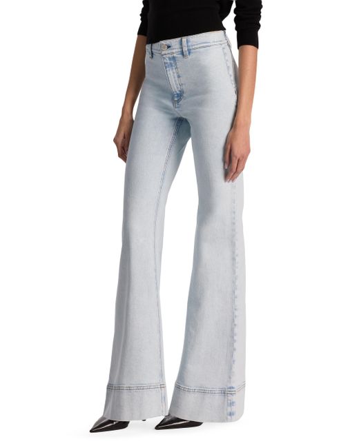 Crafted of stretch cotton, the Gorgeous jeans from Alice + Olivia are cut in a flared, high-rise silhouette featuring flat seam detailing at the back. Belt loops Button-front closure 94% cotton/5% elastomultiester/1% elastane Dry clean Imported SIZE & FIT Inseam: about 35" Model measurements: 5'10" tall Model is wearing a US size Small ABOUT THE BRAND Founder Stacey Bendet has been embracing bold color, eclectic prints and an overall passion for whimsy since launching Alice + Olivia in 2002. From party-ready dresses to statement tops and everything in between, she's created a playful and overtly feminine aesthetic that's uniquely her own. Contemporary Sportswear - Alice + Olivia > Alice + Olivia > Saks Fifth Avenue. Alice + Olivia. Color: Darla Light Indigo. Size: 24.
