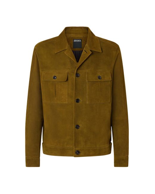 This leather blouson jacket fits like a glove with its adjustable hem. Regular fit Shirt collar Button closure Adjustable hem Shirt cuffs Flap chest pockets Lower straight pockets 65 cm length on size 48 Made in Italy Main body: Lambskin Lining: 53% Cotton; 47% Cupro Do not wash. Do not bleach. Do not tumble dry. Iron at max 110C. Professional dry cleaning in hydrocarbons, mild process. Protect the metal accessories during washing. Protect leather details before washing. Professional leather clean only. Lsd Mens - Zegna Rtw > Zegna > Saks Fifth Avenue. ZEGNA. Color: Olive Green. Size: 40.