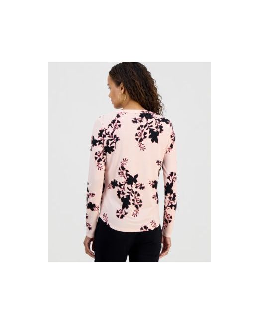 Women's Pink Petite Cameron Floral Split-Neck Zip-Pocket Top Exclusive