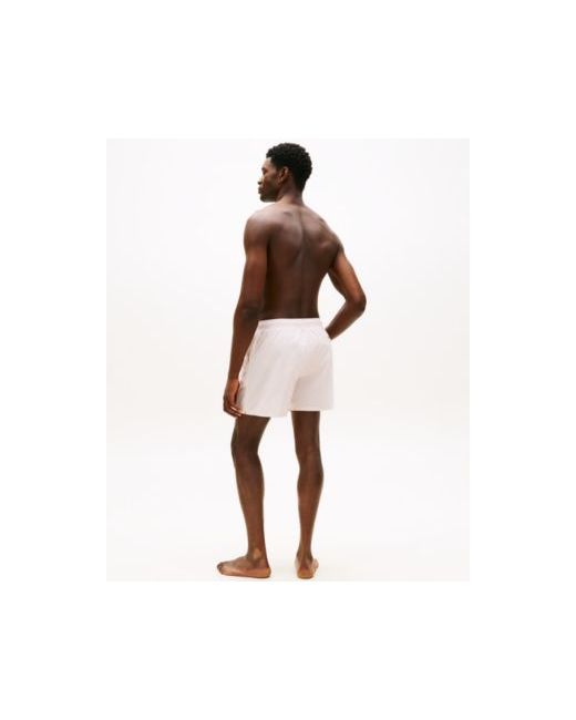 Hit the beach in effortless style with these Tommy Hilfiger medium-length swim trunks, featuring a drawstring waistband for a secure fit. The striped pattern and zip pockets provide practical functionality, while the iconic logo detailing adds a polished, classic touch.