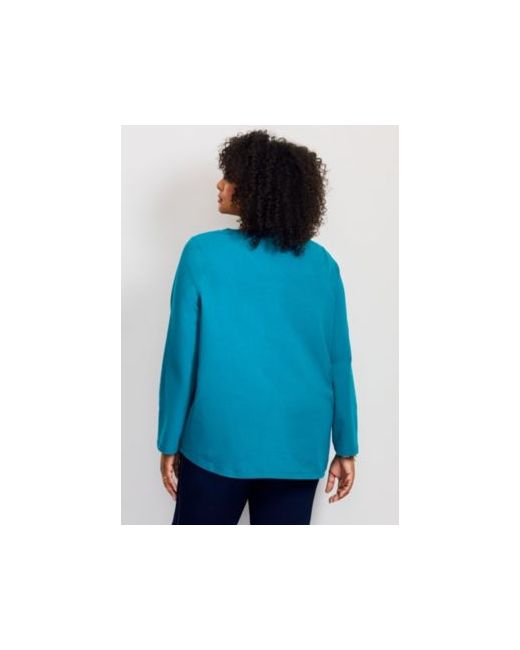 This long sleeve top features a modern square neckline with a banded edge that adds structure and visual interest. Gentle pleating along the front neckline creates soft draping and subtle texture, enhancing the relaxed silhouette. Designed for everyday wear, the fabric offers a comfortable and casual fit that moves easily with the body. Fabric: Soft stretch cotton that holds its color and shape beautifully — and stays that way, wash after wash. Fit: Relaxed fit. Square neck. Long sleeves. Care: Machine Wash Key Features Include: 95% Cotton 2% ELASTANEImported. Length: 30". Plus Sizes 14-36Avenue
