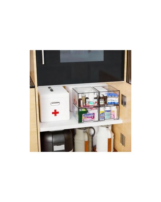 Clear stackable drawer set with built-in handle, anti-slip base and smooth pull-out rail keeps makeup, skincare, office or craft supplies visible and tidy use single or stacked on desk, vanity, cabinet, shelf, Rv. Weight: 5.58 pounds. Length: 7.40 inch. Width: 6.10 inch. Height: 4.40 inch.