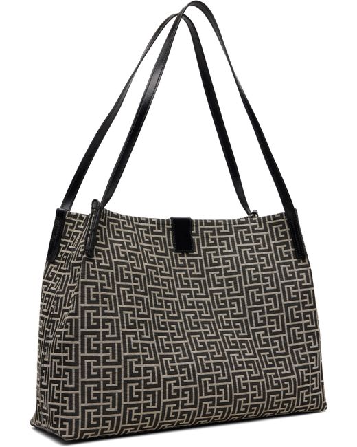 Coated cotton-blend ottoman tote. · Jacquard logo pattern printed throughout · Polished calfskin twin shoulder straps · Logo printed at face · Press-stud closure · Patch pocket with card slot at interior · Twill lining · H12.75” x W17.75” x D5.5” Supplier color: Black