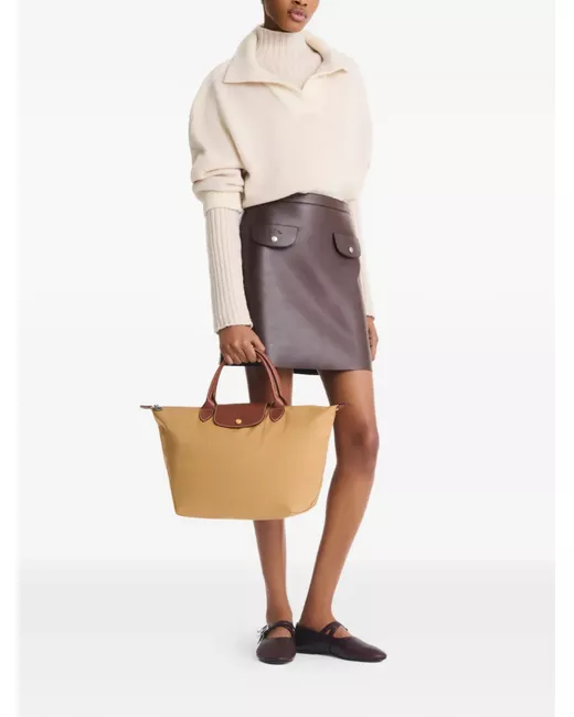 beige leather trim embossed logo to the front branded zip puller foldover top with press-stud fastening top zip fastening main compartment multiple internal slip pockets This piece comes complete with a protective dust bag.