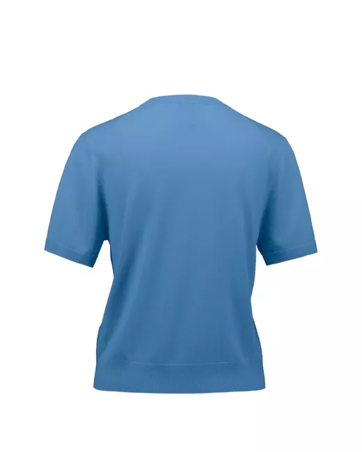 blue short sleeves ribbed hem ribbed cuffs round neck knitted construction