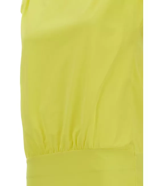 yellow gathered detail round neck sleeveless above-knee elasticated waist