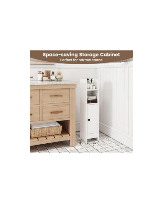 White Space-Saving Corner Bathroom Slim Cabinet with Door and Adjustable Shelf