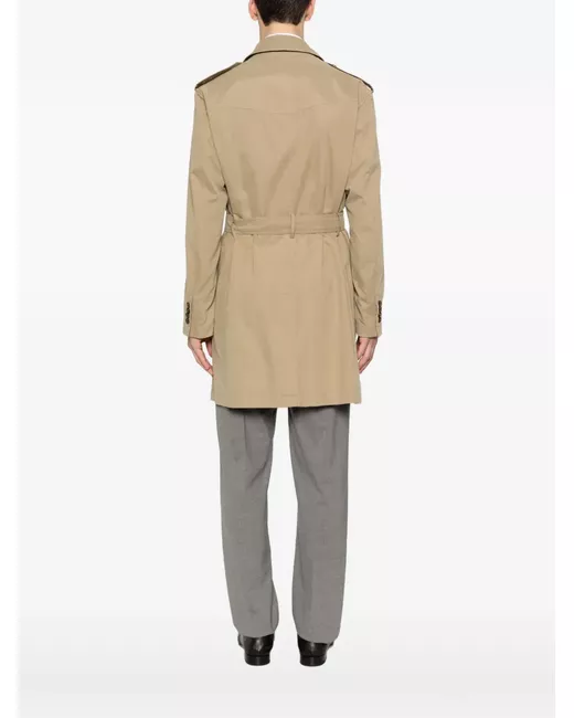 beige double-breasted button fastening epaulettes belted front pockets