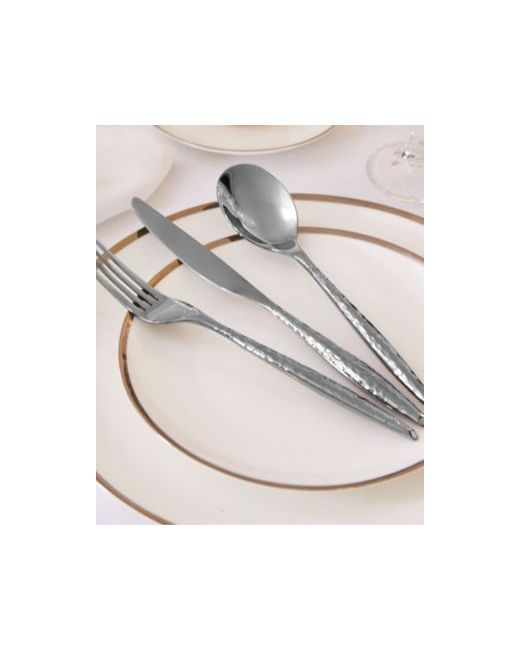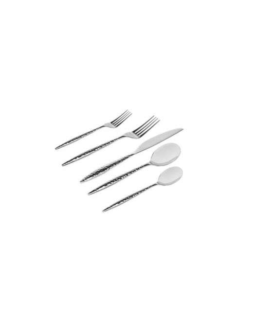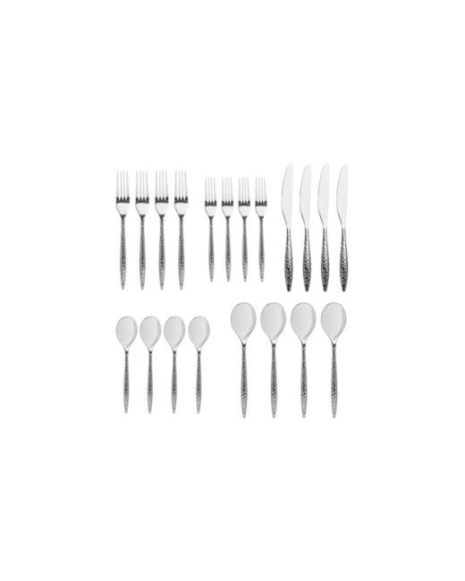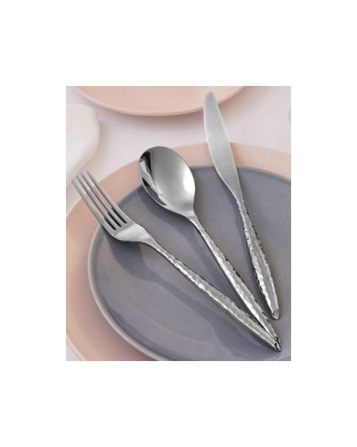 Boasting an exquisite texture that complements any ambiance, this flatware set, boasting a stainless steel core that ensures durability for use on a daily basis, provides a full place setting for any special gathering.