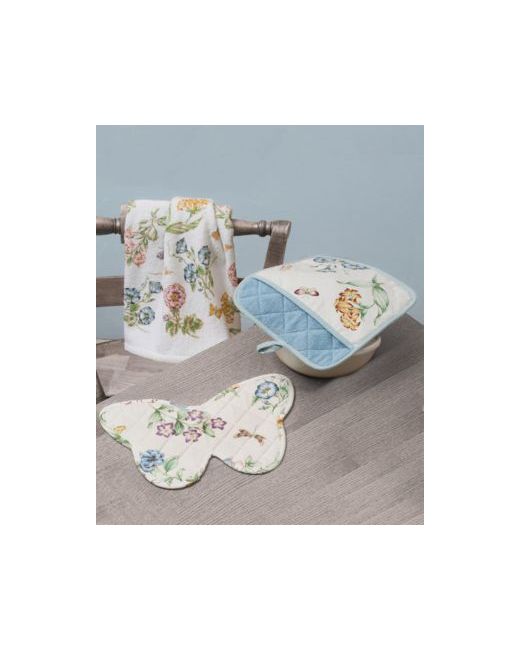 Sweet blooms and butterflies on this quilted placemat evoke the cheery essence of spring at any time of year. Rosy pink, gold and violet hues mingle on solid white with a scalloped edge. From the Butterfly Meadow collection.